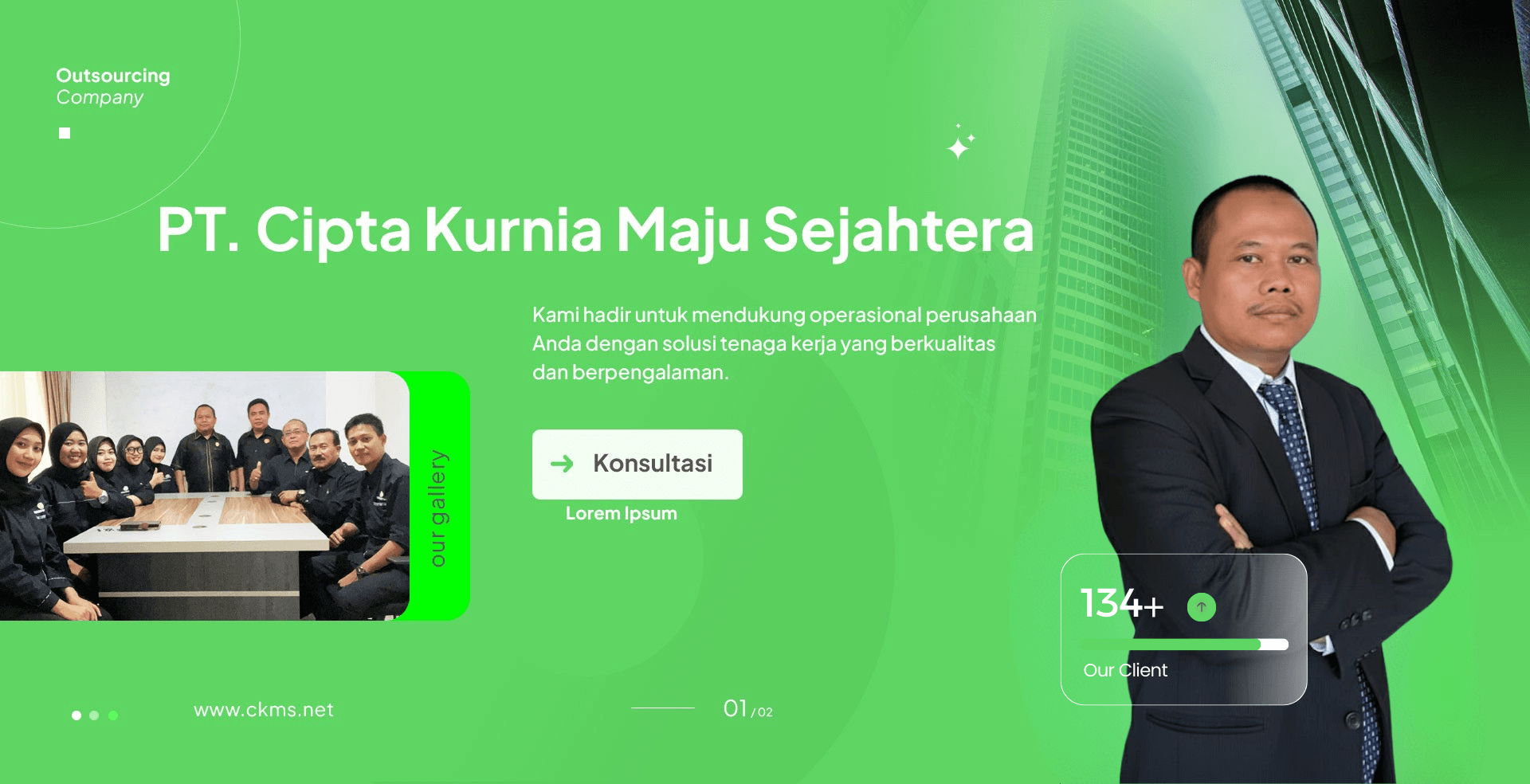 PT. CIPTA KURNIA MAJU SEJAHTERA (CKMS) merupakan perusahaan yang bergerak di bidang jasa outsourcing. Perusahaan kami menyediakan tenaga kerja profesional dengan berbagai keahlian dan pengalaman.